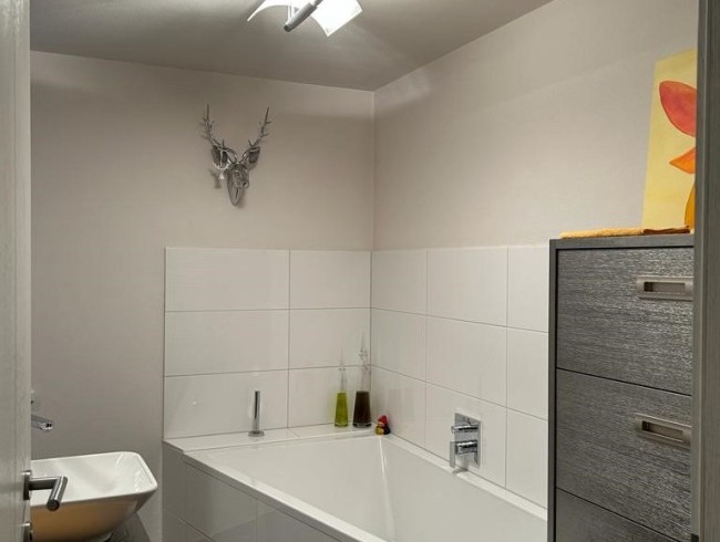 - Großzügiges Badezimmer mit Dusche, Badewanne und WC